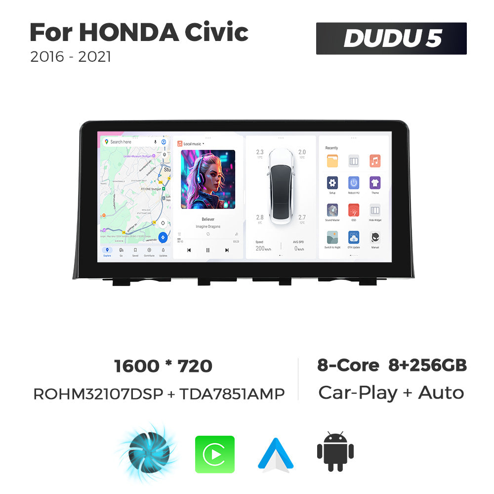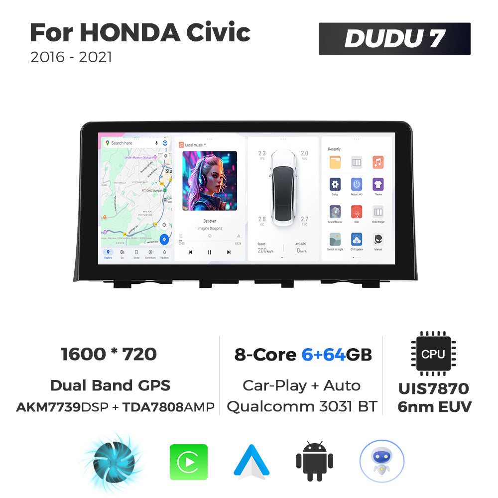 Navifly DUDU7 8core Car Audio Radio 12G+512G 10.33inch Multimedia Player 2k Screen Navigation Car-play Auto for HONDA Civic 2016-2021