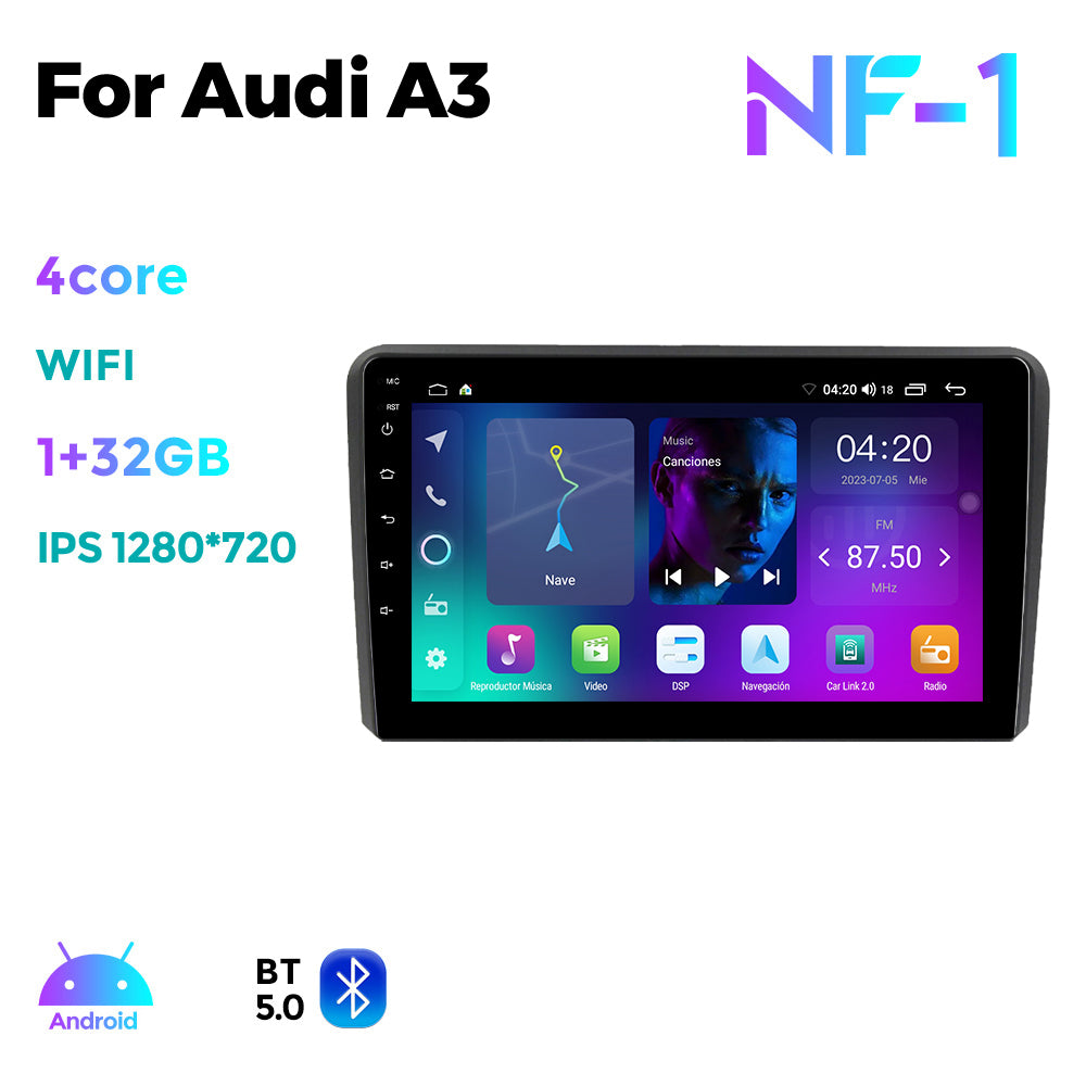 NaviFly NF Series Android 14 8G+256G 2K QLED screen CarPlay Auto DSP RDS 4GLte WIFI For Audi A3 9inch