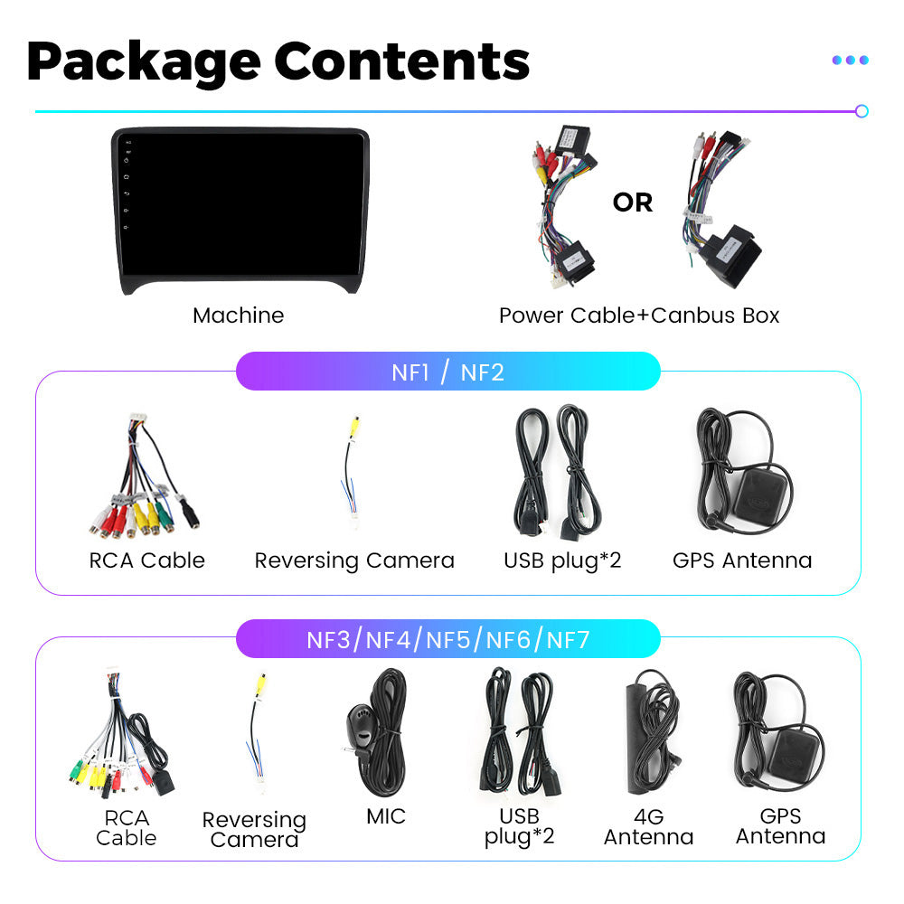 NaviFly NF Series Android 14 8G+256G 2K QLED screen CarPlay Auto DSP RDS 4GLte WIFI For Audi TT 2006-2012 9inch