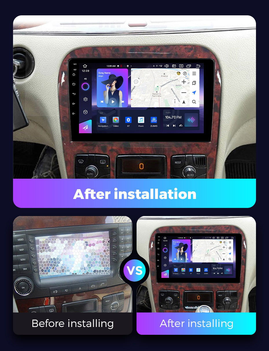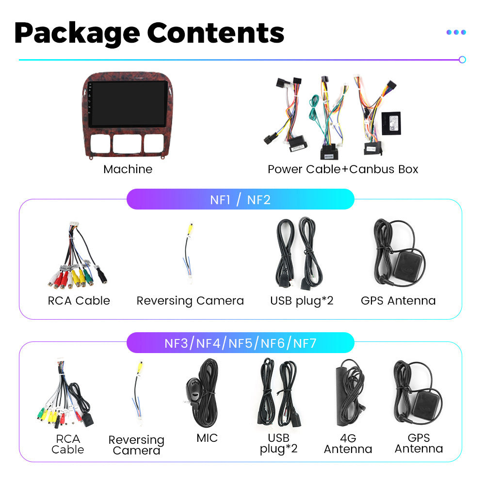 NaviFly NF Series Android 14 8G+256G 2K QLED screen CarPlay Auto DSP RDS 4GLte WIFI For Mercedes Benz S Class 1998-2005 9.5Inch