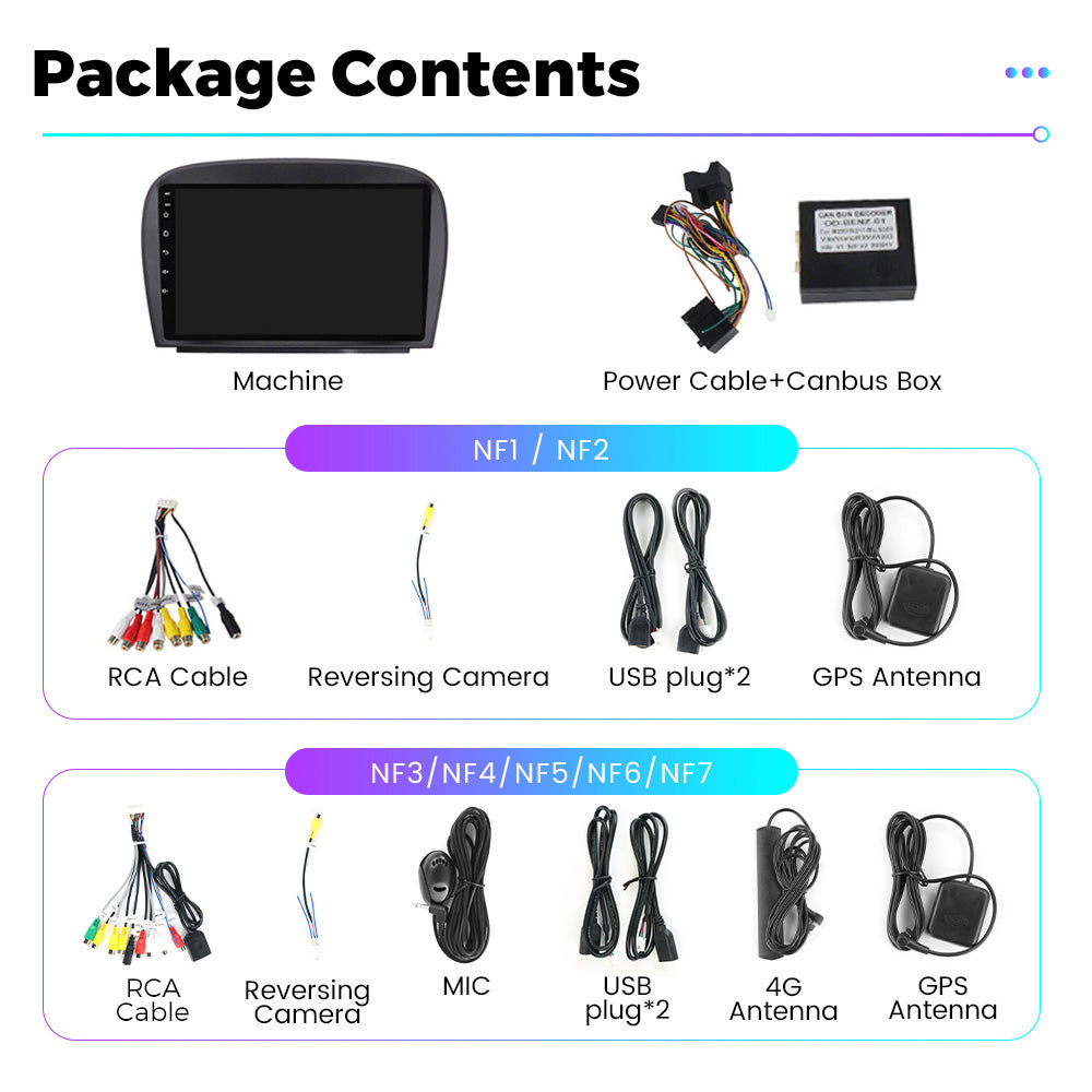 NaviFly NF Series Android 14 8G+256G 2K QLED screen CarPlay Auto DSP RDS 4GLte WIFI For Mercedes Benz SL 2001-2007 9.5Inch