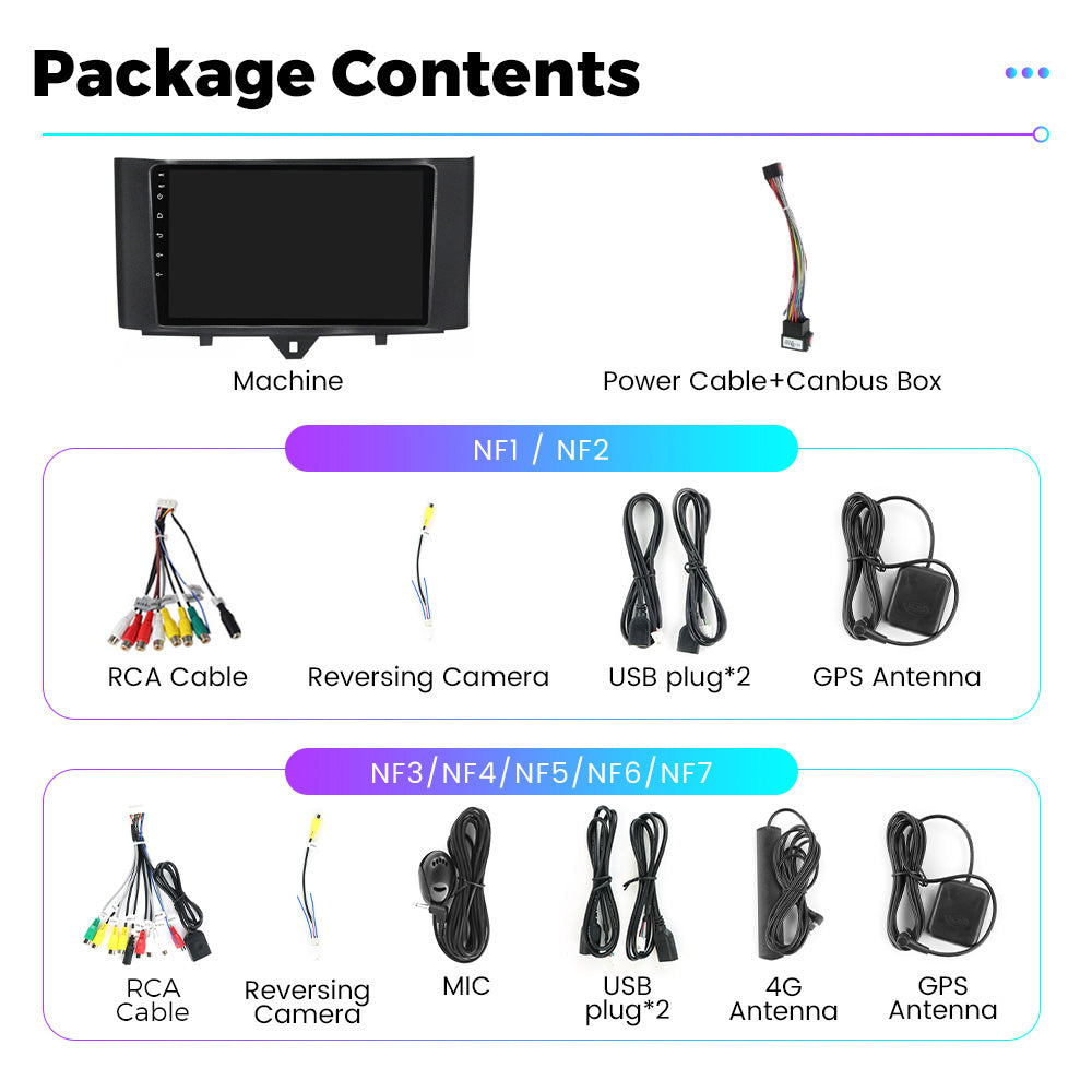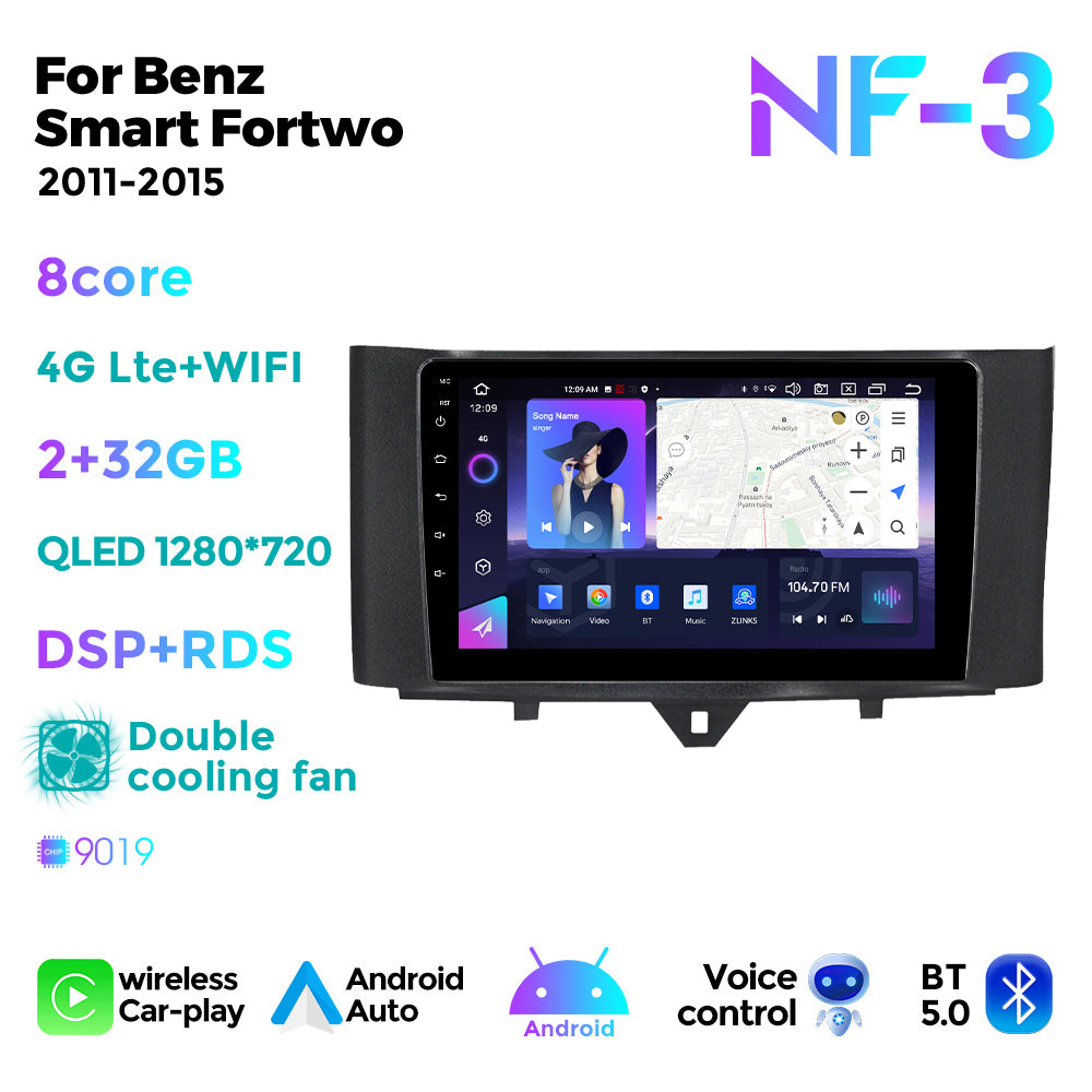 NaviFly NF Series Android 14 8G+256G 2K QLED screen CarPlay Auto DSP RDS 4GLte WIFI For Mercedes Benz Smart Fortwo 2011-2015 9.5Inch