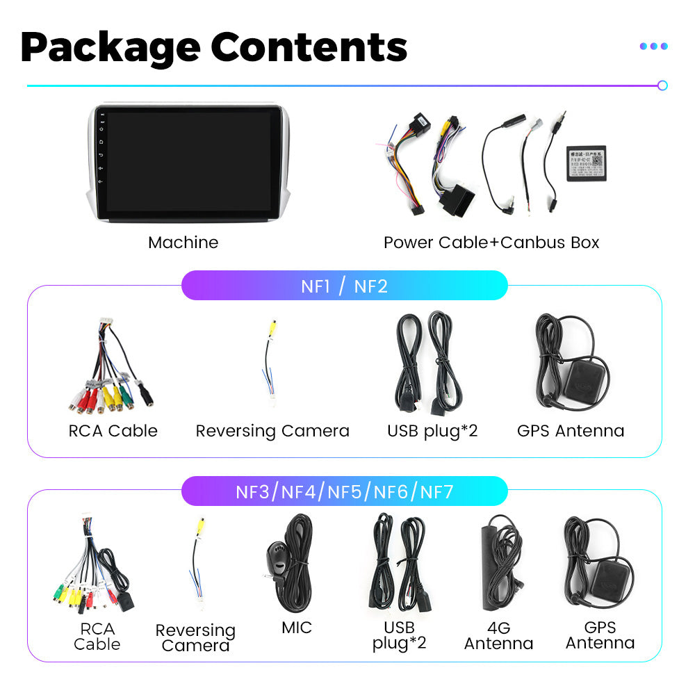 NaviFly NF Series Android 14 8G+256G 2K QLED screen CarPlay Auto DSP RDS 4GLte WIFI For Peugeot 2008 2013-2020 10inch