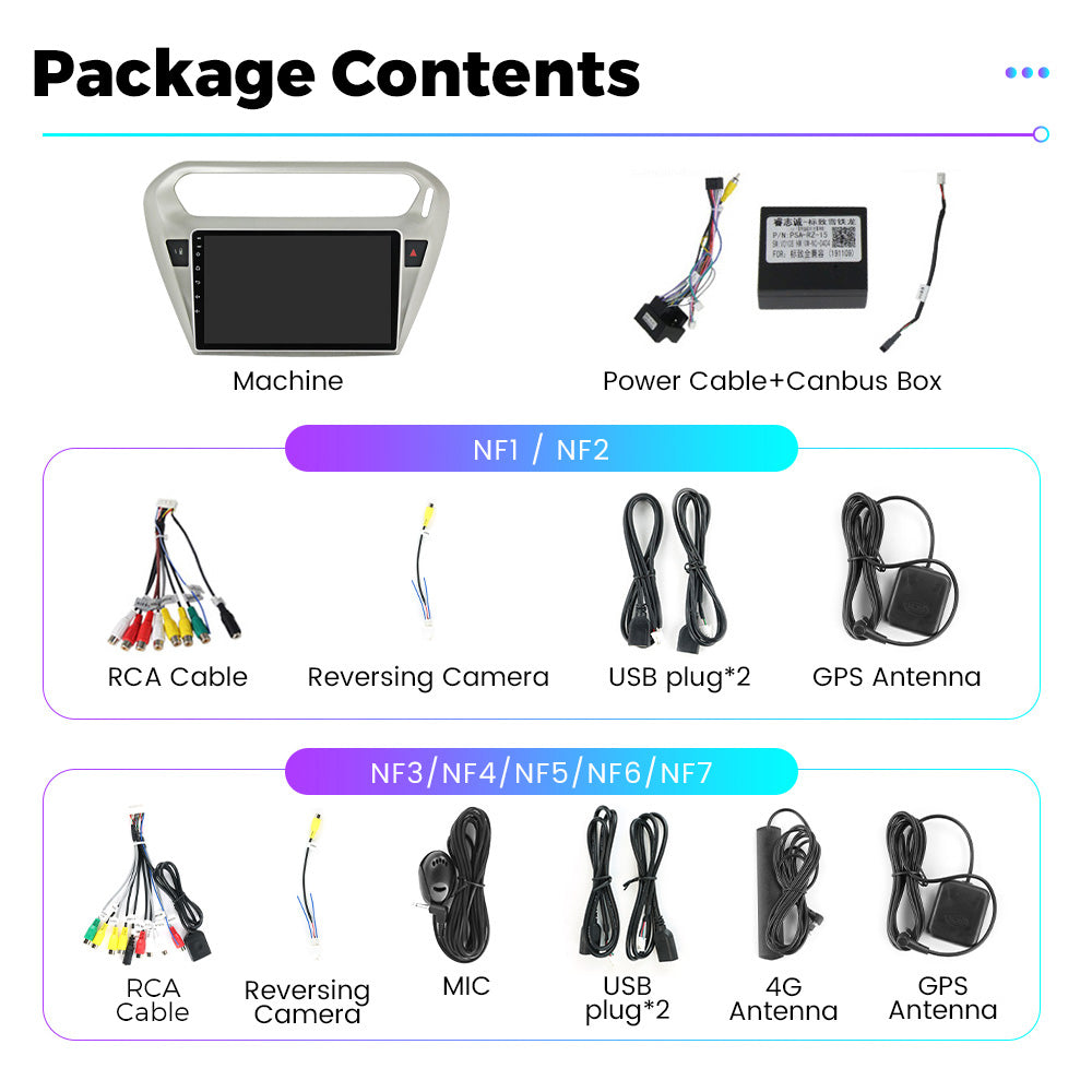 NaviFly NF Series Android 14 8G+256G 2K QLED screen CarPlay Auto DSP RDS 4GLte WIFI For Peugeot 301 2013-2016 9inch