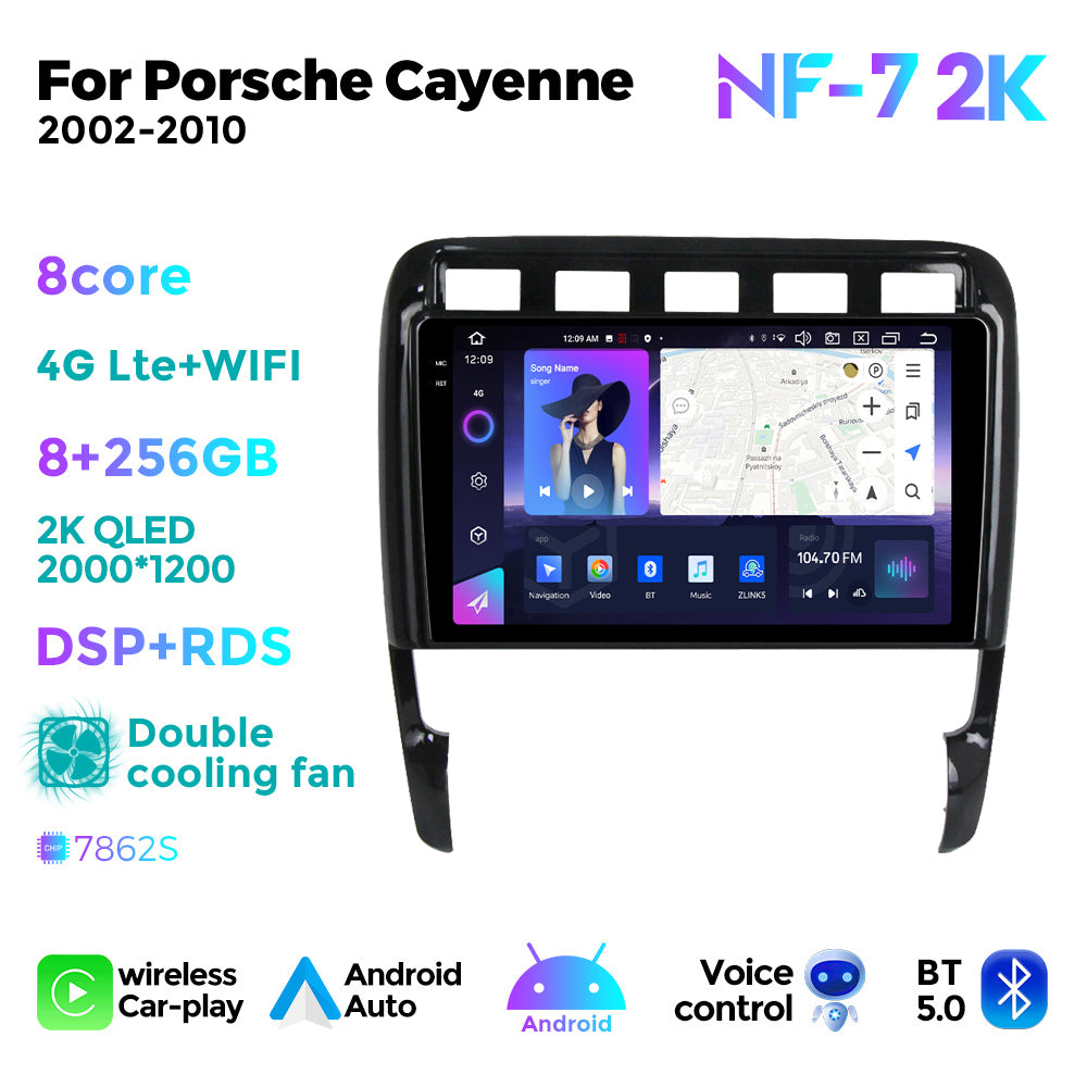 NaviFly NF Series Android 14 8G+256G 2K QLED screen CarPlay Auto DSP RDS 4GLte WIFI For Porsche Cayenne 2002-2010 9inch